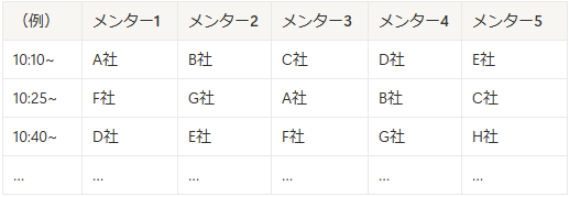 10:10 | 壁打ちスタート ・ 壁打ちのタイムテーブルの詳細は、当選された方にのみ後日お送りされます。 |